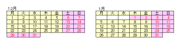 年末年始の休業日をお知らせいたします